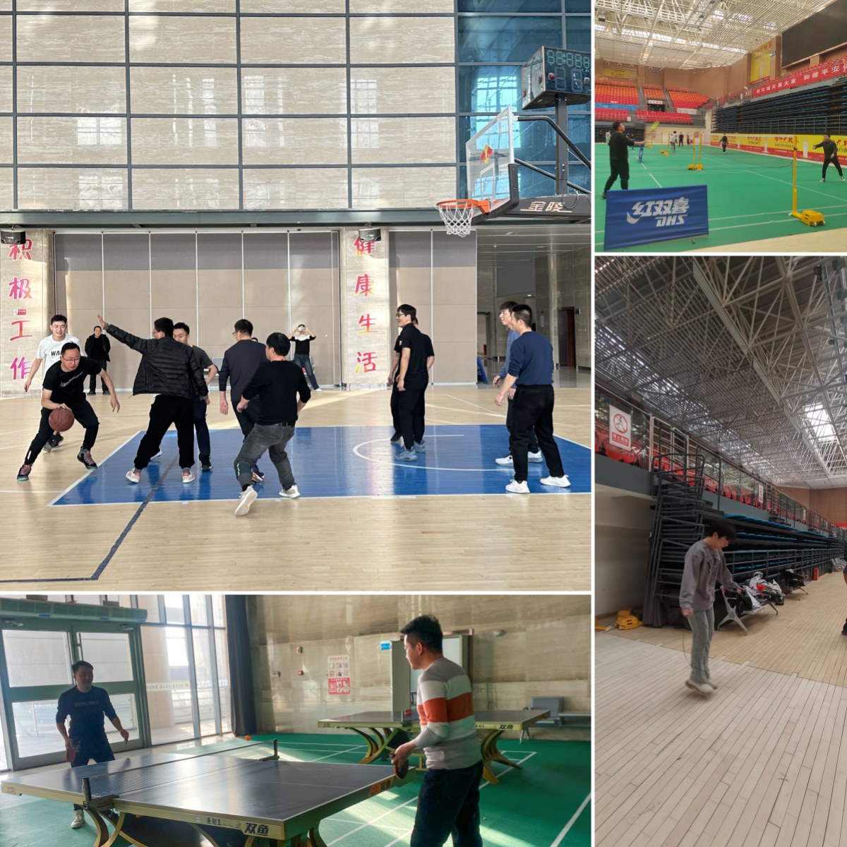 本次體育活動(dòng)項(xiàng)目為籃球、兵乓球、羽毛球、跳繩,踢毽子。在兵乓球賽場(chǎng)上,在大家的助威聲中,一個(gè)個(gè)前沖球、高拋球、弧旋球,左右分飛;一個(gè)個(gè)箭步、碎步、跨步,快速靈動(dòng);一次次扣殺、吊短、反擊,妙趣橫生。羽毛球賽場(chǎng)上,隊(duì)員們各個(gè)凝神聚氣,眼觀足動(dòng),左突右沖,前后騰挪,時(shí)而遠(yuǎn)線扣殺,時(shí)而短線吊球,彼此見招拆招,勢(shì)均力敵,不相上下。伴隨著羽毛球與球拍碰撞發(fā)出的砰砰響聲,精彩的扣殺接連不斷,贏得賽場(chǎng)邊陣陣歡呼與喝彩。最精彩激烈的還要屬籃球賽了,2甲公司球隊(duì)隊(duì)員發(fā)揚(yáng)“友誼第一、比賽第二”的運(yùn)動(dòng)精神,各顯神通努力拼搏,左突右閃,奔襲回防,后撤跳投,每一次瀟灑的過人,都扣動(dòng)著在場(chǎng)觀眾的心弦;每一次奮力的投籃,都訴說著運(yùn)動(dòng)員們對(duì)于勝利的追求;速度與力量的博弈,技巧與意志的比拼;競技體育的魅力在此刻體現(xiàn)的淋漓盡致!場(chǎng)內(nèi),各隊(duì)球員配合默契,技術(shù)熟練,進(jìn)球不斷,場(chǎng)外,觀眾熱情高漲、掌聲不熄,球場(chǎng)也在比賽中不斷升溫,感染了在場(chǎng)的每一個(gè)人。此外,還有飛快舞動(dòng)的跳繩繩索;毽子被向上輕輕一拋,有節(jié)奏地起起落落。所有比賽項(xiàng)目不但考驗(yàn)著職工們的體力,也充分體現(xiàn)了團(tuán)隊(duì)合作的重要性,整個(gè)比賽活動(dòng)精彩紛呈。