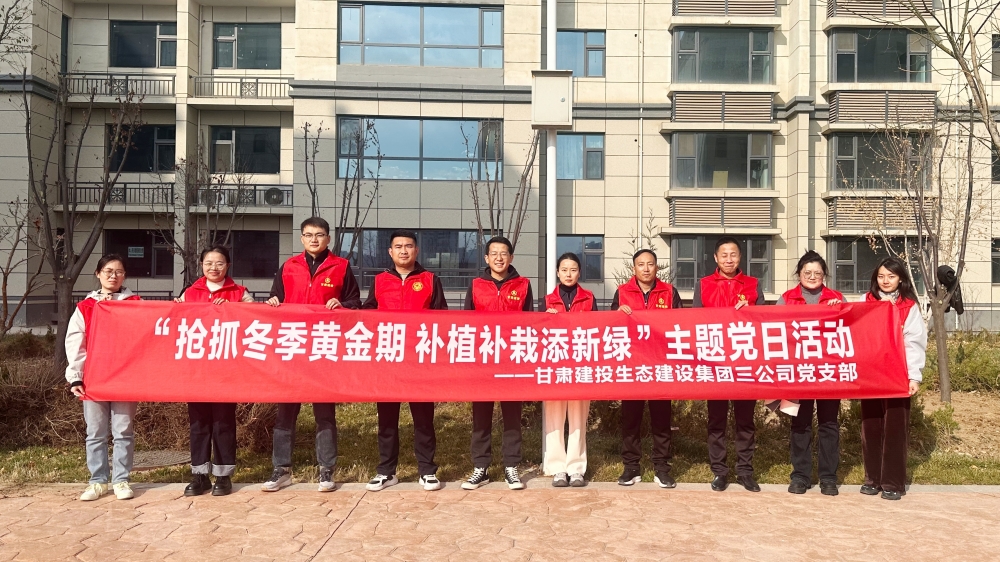 為進一步踐行習(xí)近平生態(tài)文明思想,搶抓冬季補種黃金期。近日,生態(tài)三公司黨支部組織全體黨員、團員青年在蘭州新區(qū)瑞嶺名郡項目開展“搶抓冬季黃金期 補植補栽添新綠”主題黨日活動,牢固樹立“增綠就是增優(yōu)勢,植樹就是植未來”生態(tài)理念。