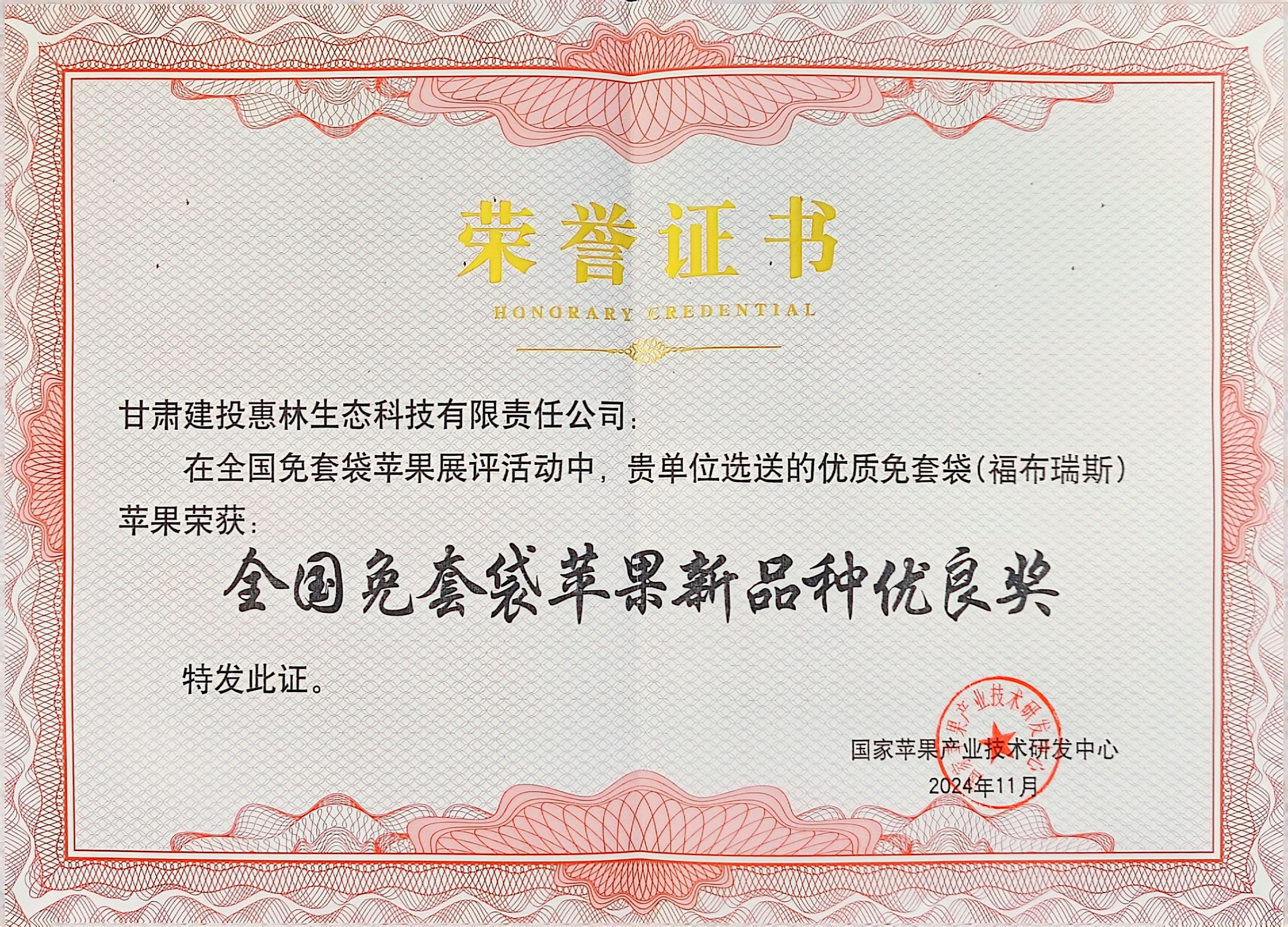 近日,全國(guó)蘋(píng)果免套袋輕簡(jiǎn)化精準(zhǔn)高效優(yōu)質(zhì)生產(chǎn)技術(shù)研討培訓(xùn)會(huì)暨蘋(píng)果免套袋栽培技術(shù)協(xié)作組工作交流會(huì)在山東省煙臺(tái)市蓬萊區(qū)舉辦,由惠林公司選送的優(yōu)質(zhì)免套袋(福布瑞斯)蘋(píng)果榮獲“全國(guó)免套袋蘋(píng)果新品種優(yōu)良獎(jiǎng)”。